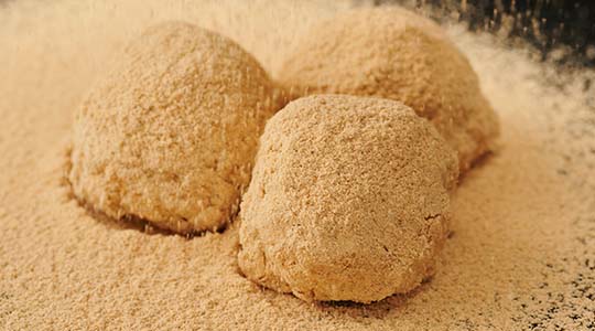 試行錯誤を繰り返しながら、食事に合う丁度良い塩梅の"ぼた餅"をつくり、たちまち大人気商品となった。今では、年間450万個以上を販売する「資さんうどん名物」として、多くのお客さまに愛されている。