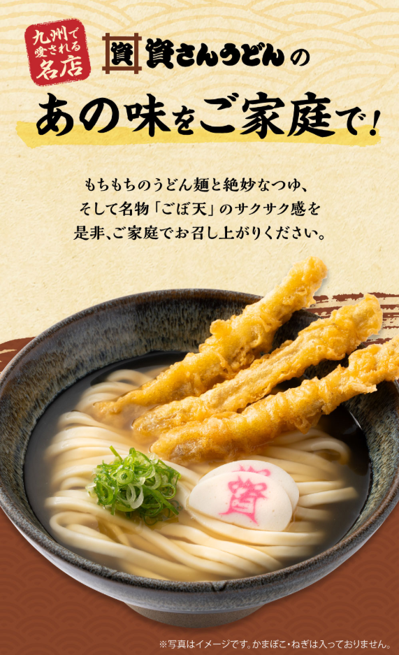 是非、資さんストアの新商品肉ごぼ天うどんで、お食事を楽しんでください!