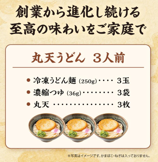 ■内容量 1,092g(めん250g×3、丸天78g×3、濃縮つゆ36g×3)