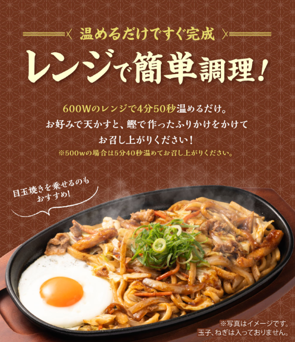 資さんストアの焼うどんは、レンジで簡単に調理できる便利な商品です。